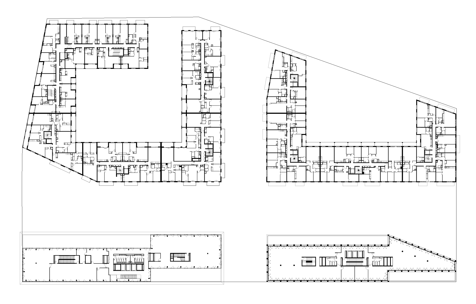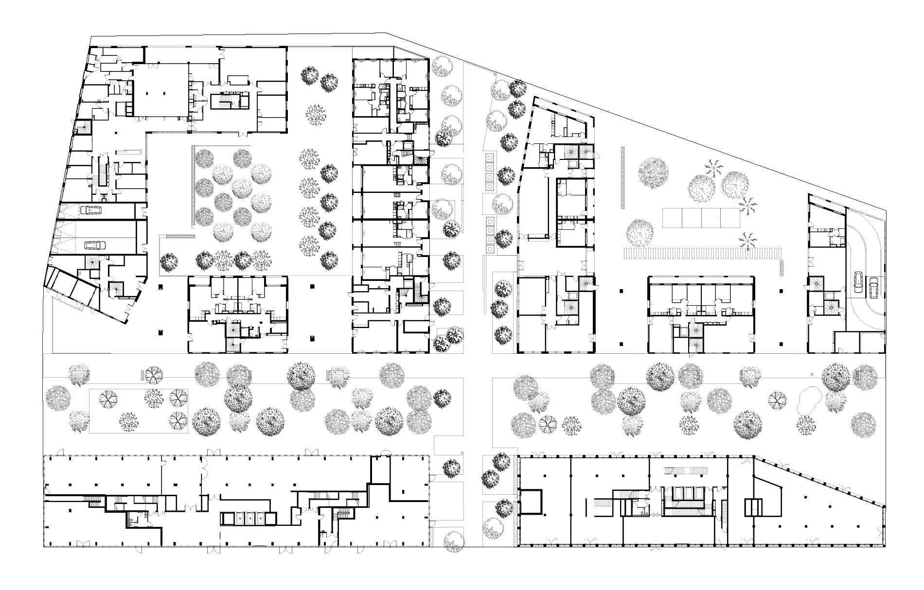 La volumétrie des îlots résulte d’une double appartenance au quartier et au grand paysage. La disposition des logements est ouverte et poreuse face au grand paysage ouvert, celle des bureaux consolide le nouvel ordre urbain engagé par la métamorphose du boulevard. Les espaces ouverts forment le cœur du projet : ils favorisent les interactions entre les programmes et établissent des liens essentiels avec l’environnement urbain élargi. La mixité programmatique au sein de l’opération implique de réfléchir à un équilibre entre des programmes différents, la création d’interactions entre les usagers, la préservation de l’intimité des logements et la visibilité des bureaux.